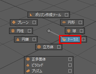 トーラスが作成されます。非選択時の Shiftキー(⇧)+右クリック長押し はポリゴンオブジェクト作成のマーキングメニューになります。