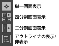 画面左側のクイックレイアウトでは、ビューの分割等のレイアウトを変更できます。