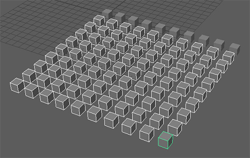 pCubeを複製→X方向に2、Y方向に1移動する操作が14回繰り返されます。