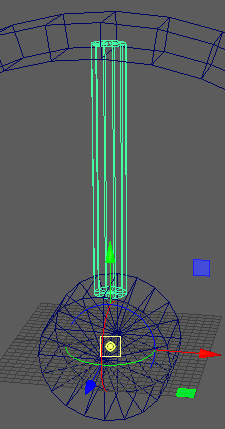 ・pCylinder2 を選択、チャネルボックスで 移動Y に 22、スケールXYZ(2, 15, 2)を入力。