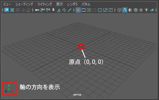 ワールド座標の中心は原点(0, 0, 0)の位置になります。