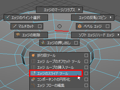 ・Shiftキー(⇧キー)+右クリックを長押し、 [エッジのスライドツール] を選択。