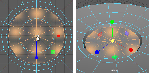 ・frontビューで、-Y方向にマニピュレータを何度かドラッグして、凹みの床面を平らにする。