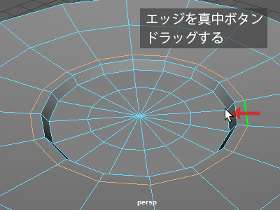 ・perspビューで外周の縁のエッジをダブルクリックして選択する。