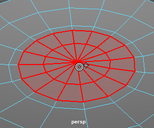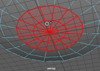凹みとなる部分にエッジを増やします。カップの高台の半径が3cmのため、少し大きく作ります。