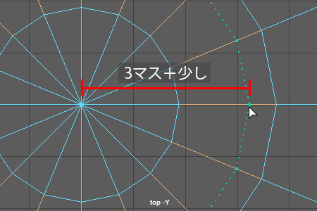 ・topビューで、ソーサーの中心からグリッド3マス+少しの位置で、エッジ上でクリックする。