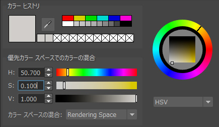 ・HSVのスライダーを動かし、ややベージュ色にする。