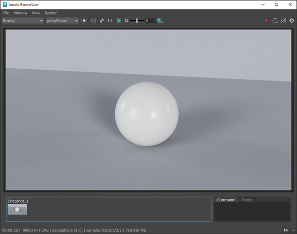 Arnold RenderViewに戻り、レンダリングして画像を確認します。