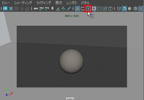 ・perspビューの真中上、[解像度ゲート] ボタンをクリックして、レンダリング範囲を表示する。