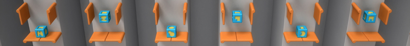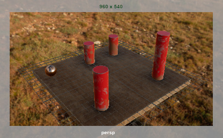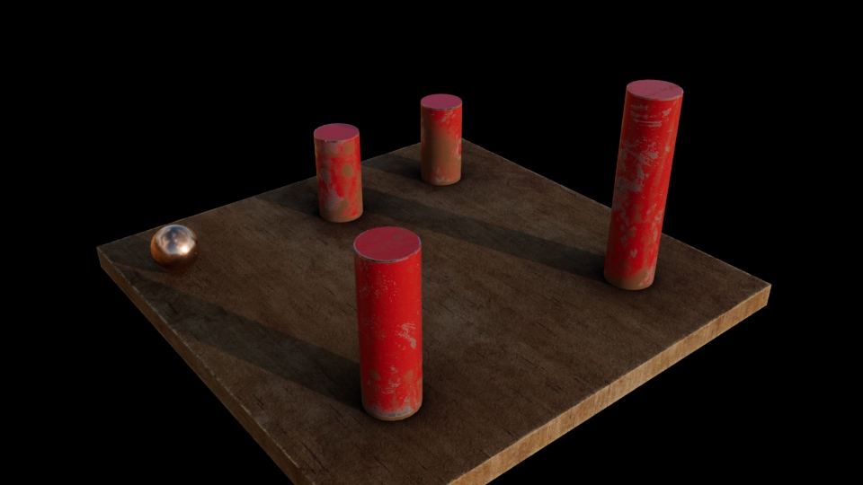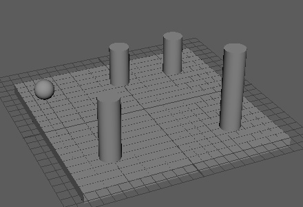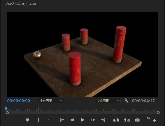 各自で任意に円柱を4本配置し、跳ねる球のアニメーションを作成します。