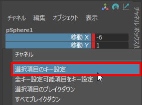 ・移動Y で 右クリック > [選択項目のキー設定] を選択。