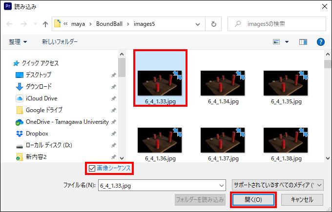 ・[画像シーケンス] に チェック を入れる。