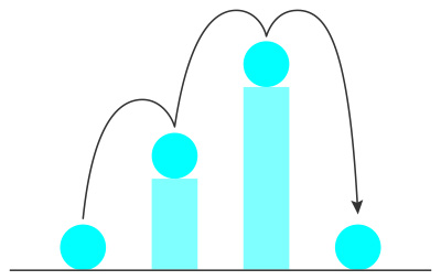 球が跳ねて円柱を昇り降りするアニメーションを作ります。