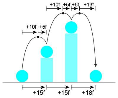 地面から+15フレームで、円柱の上に到着します。