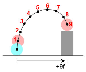 フレームをプラスして考える場合、今いる場所を含めず次のフレームからカウントすると把握しやすいです。下図は+9フレームの場合の例です。
